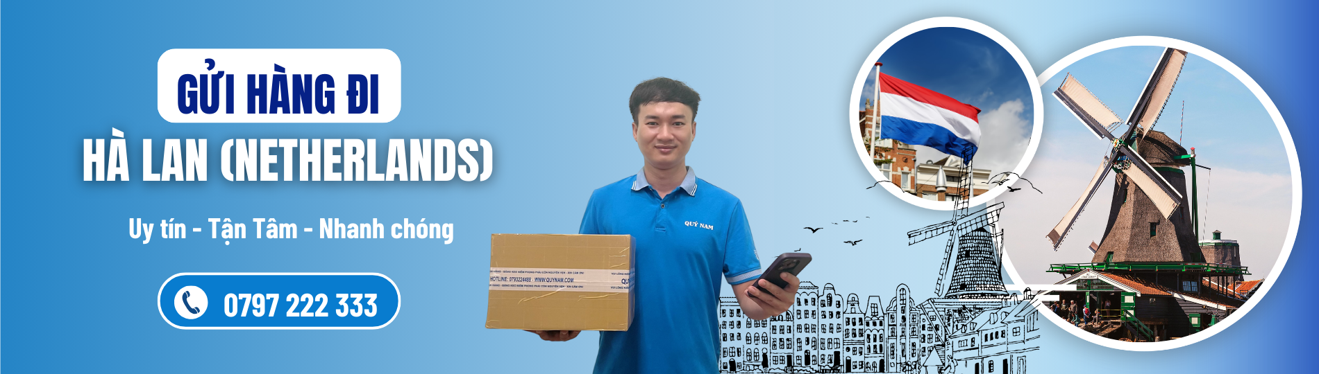 Chuyển phát hàng đi Hà Lan chuyên tuyến | Door to door 3–7 ngày – Cước từ 180K/kg